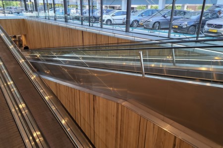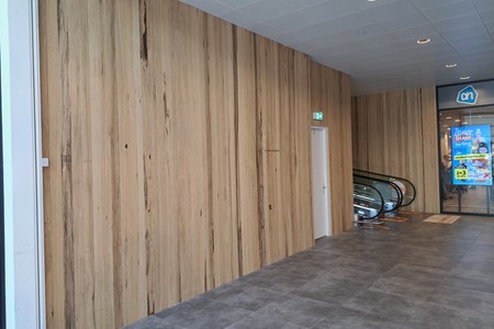 In opdracht van Aannemersbedrijf VDS B.V. heeft Veteka 3500 m1 aan Fraké-hout geleverd voor het bekleden van wanden in het winkelcentrum, o.a. rondom winkels, de liften en roltrappen. De op maat geproduceerde houten wandlamellen en achterregels zijn geleverd na goedkeuring van monsters. De houten wandbekleding is brandvertragend behandeld en om het karakter van het Fraké te behouden is gekozen voor een transparante afwerking.